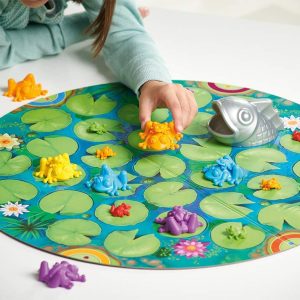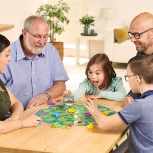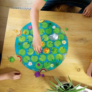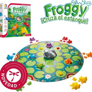 Froggy es el primer juego multijugador de Smart Games donde una familia de 2 a 6 pueden jugar juntos. Guía a la rana por el estanque y detén a otros jugadores. El primer jugador en cruzar a toda la familia de ranas al otro lado del estanque gana el juego.